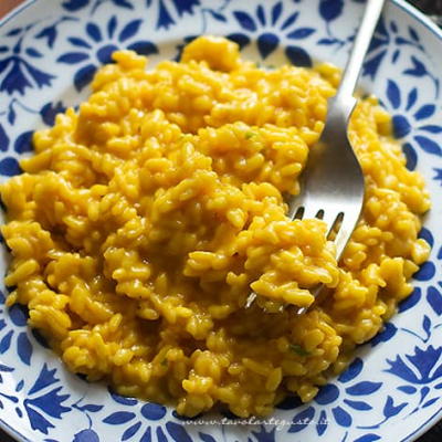 Il risotto allo zafferano è una tipica preparazione milanese e i pareri sulla ricetta "autentica" sono vari. C’è chi asserisce che nel soffritto bisogna mettere un cucchiaio di sugo di arrosto e il midollo di manzo, chi dice che il riso va bagnato con vino bianco e altri con il rosso. E il riso, Arborio o Carnaroli? Noi lo abbiamo fatto così.