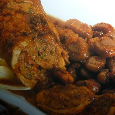 Quando è cotta la taglierete e servirete con patate mascè, o finocchi lessi o gratinati, spinaci saltati al burro, o le solite patate arrosto che potrete cucinare nella stessa teglia.